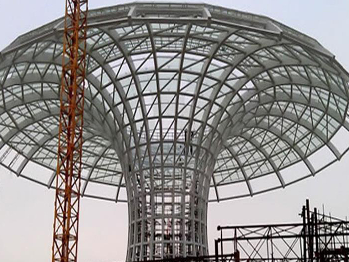 二、球形网架结构因其结构新颖,受力合理,自重轻、用钢量低等优点。如大型体育场馆球形马鞍山螺栓球网架、公共场馆球形网架、电厂马鞍山螺栓球网架、水泥工业球形网架、仓储物流球形网架、马鞍山干煤棚工业球形网架、马鞍山收费站马鞍山加油站球形网架、展览中心、影剧院、商场、航站楼、候车厅、工厂马鞍山车间、仓库、电视塔等球形螺栓球节点网架。国内球形网架结构主要分为:马鞍山焊接球节点网架及螺栓球节点网架两种。螺栓球节点网架其构件工厂内加工量较大,现场安装便捷,适用于现场工期紧,马鞍山施工条件、用电量受制约,网架形状复杂、马鞍山杆件定位困难的异形结构。螺栓球节点球形网架系统基本由马鞍山杆件、螺栓球、支撑支座等组成。按照节点形式可分为交叉马鞍山桁架体系、四角锥体系、三角锥体系等。支撑方式多为固定支座支撑。对于大面积、大跨度及有特殊受力或伸缩要求的网架结构可采用橡胶支座、滑移支座、球铰支座等支撑形式,以满足结构自身的受力稳定、均衡,便于内力释放等设计要求。